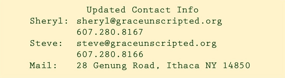 Grace Unscripted is an open door to conversation as together we are a part of the one great story.  Please take a moment to browse the website (it's still a work in progress). We can stay connected there.  Or, better yet, we would love to host you here, creekside in the hollow.